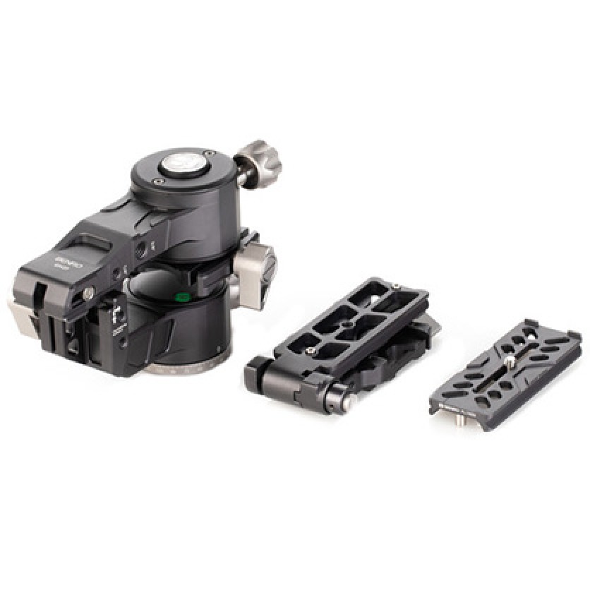 The GH2F Folding Gimbal Head from Benro is a full-featured gimbal head that features a unique folding design for easy storage and transport. Suitable for use with camera bodies and large lenses, it has a load capacity of 22 lb but weighs only 4.5 lb. The rotating arm features an Arca-type quick release receiver and can be folded against the tripod to make the combination of head and leg set extremely compact. In addition, the rotating arm can be removed and used separately as an L-bracket for Arca-type compatible tripod heads. With the rotating arm removed, long lenses can be mounted directly to the arm mount pivot joint.