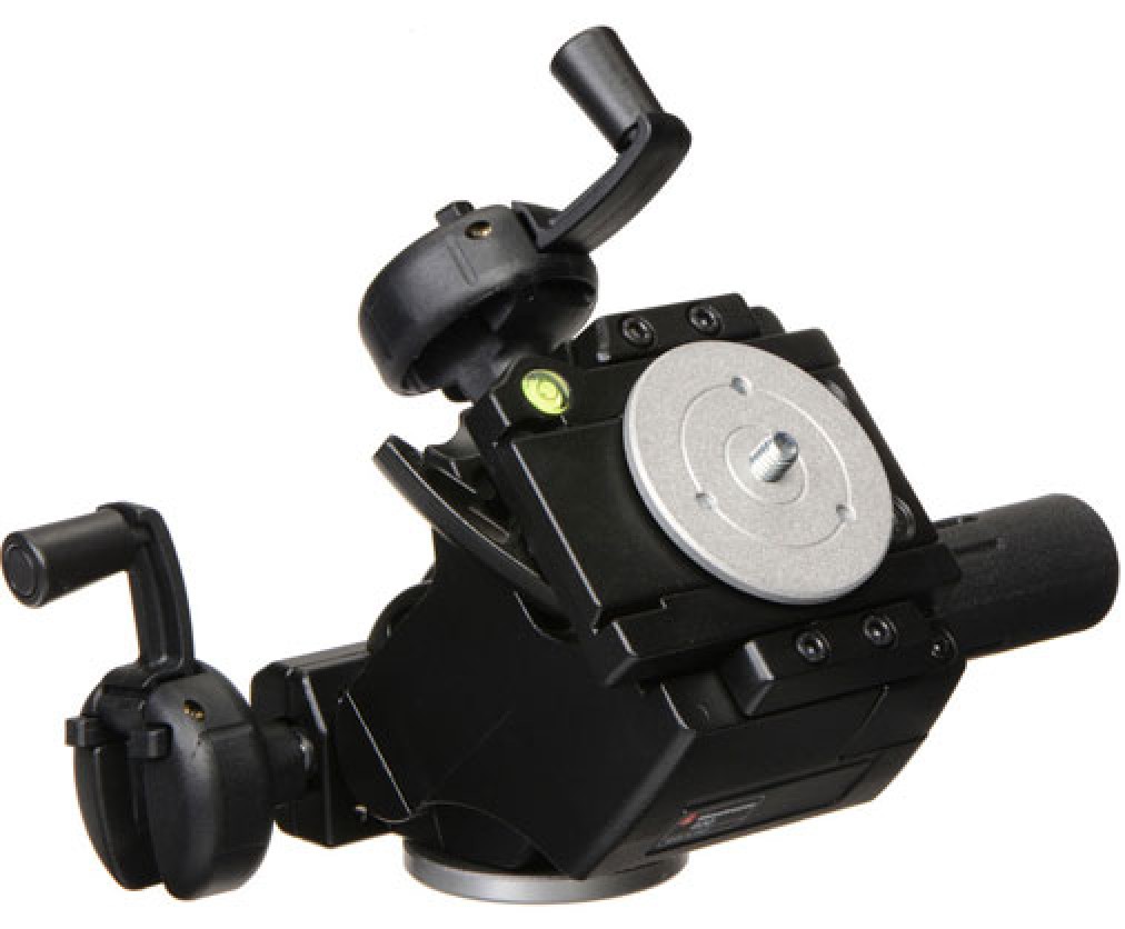 The Manfrotto 400 Deluxe Geared Head is a heavy-duty head designed primarily for use on studio column stands or larger tripods, and for use with large or medium format cameras. It offers the ultimate in precision 3-way geared adjustment and control. Self-locking foldaway cranks allow 360° panning, +30° and -90° of frontal tilt & +/- 7.5° of lateral tilt. Side to side levelling is controlled by a separated handle. The bubble level aids in precise positioning.
