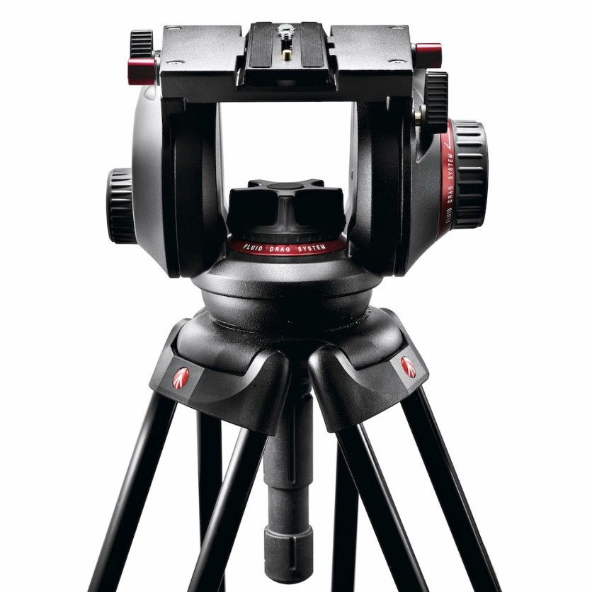 The head is made from durable aluminium. When you’re setting up a shot, the Manfrotto head offers unrivalled stability thanks to variable fluid drag system in both pan and tilt movement which allows smooth shooting, and a 4-step counterbalance system up to 12,8Kg at 55mm C.O.G or 8,5 kg at 125mm C.O.G. The head has a maximum payload of 13.5kg at 55mm C.O.G or 9Kg at 125mm C.O.G.