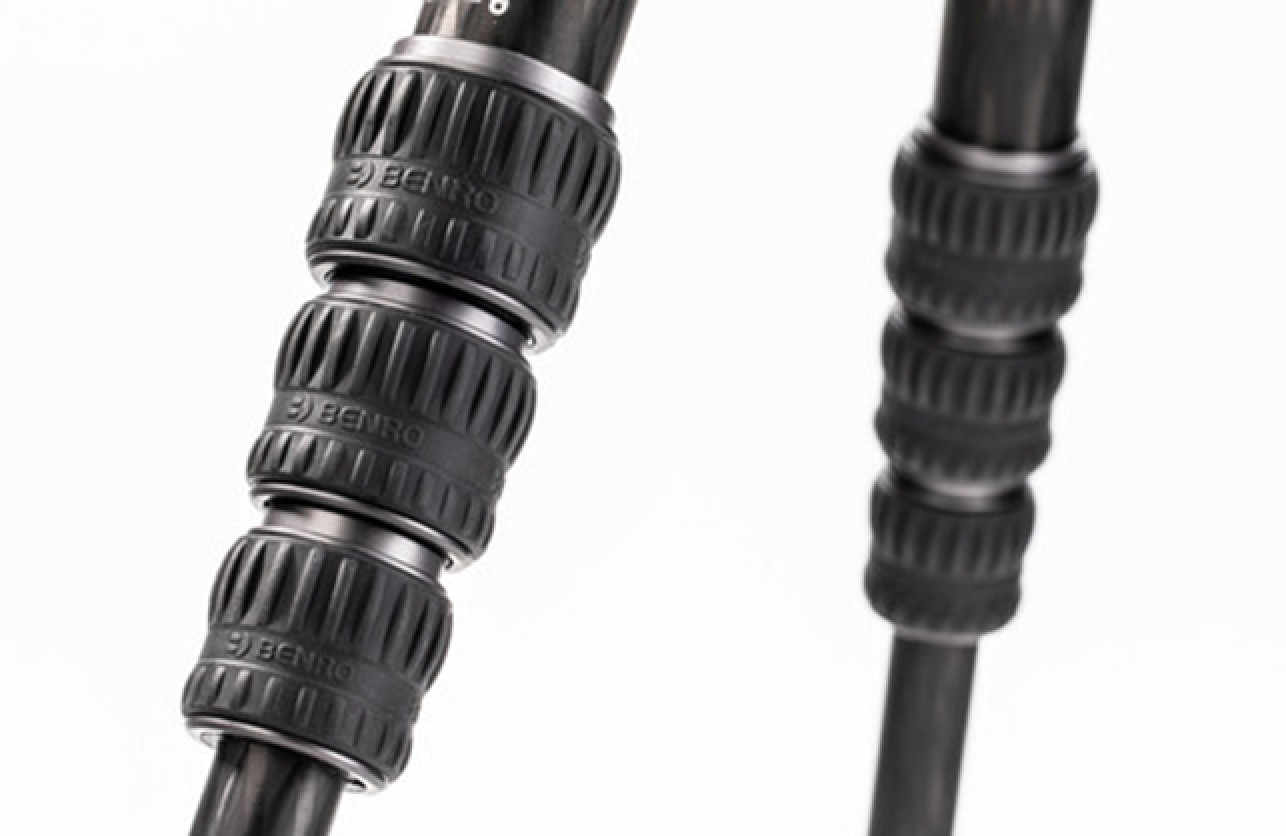 The Rhino Three Series Travel Tripod with VX30 Head from Benro combines a lightweight and versatile carbon fiber leg set with a dual panoramic ball head. With a reverse folding design, it is extremely portable and is equally suited for the studio, outdoors, and travel. The legs offer independent spread and three locking positions and incorporate automatic leg angle adjustment for fast and sure setup. The legs are reversible for inverted shooting and storage, and the aluminum leg spider features three 1/4"-20 accessory mounts for extension arms, monitors, lights, and more. For shoots where even a lightweight tripod may be more than required, the center column attaches to a removable leg to create a full-sized monopod.