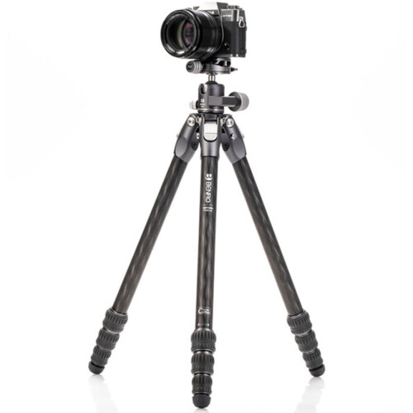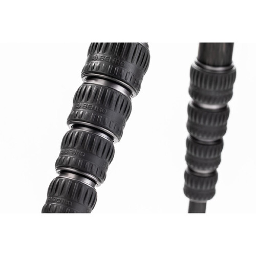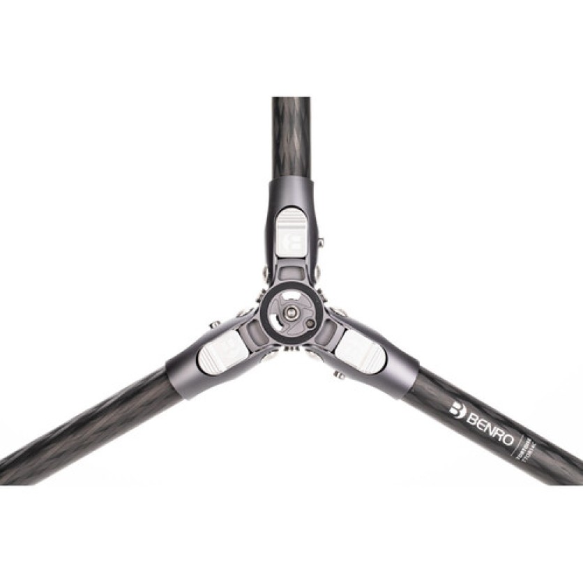 The small yet mighty Tortoise Columnless Carbon Fiber One Series Tripod with GX25 Ball Head from Benro is a compact, lightweight travel tripod with a high load capacity and remarkable stability. The center column-free design makes it nimble and lightweight for travel and reduces the potential for shake common to high center column positioning. This is especially significant when shooting video content. The legs offer independent spread and three locking positions and incorporate automatic leg angle adjustment for fast and sure setup. The aluminum leg spider features a 1/4"-20 accessory mounts for extension arms, monitors, lights, and more. The rubber feet feature three distinct contact surface providing a grip whether the legs are vertical, on an angle, or nearly horizontal when positioned.