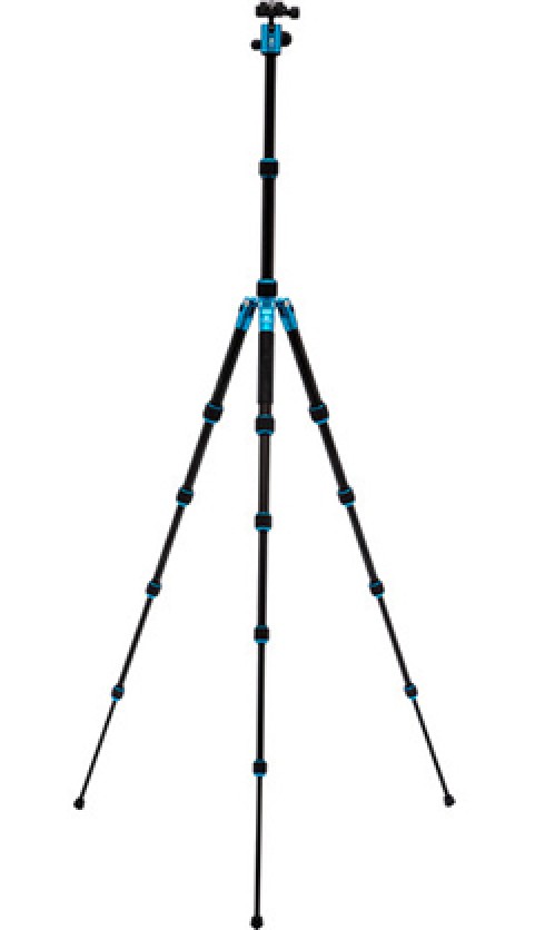 The blue Series Tripster Travel Tripod from Benro is a five-section aluminum tripod with a two-section center column that combine to reach a maximum height of 54.7", while weighing 2.5 lb. Splaying the legs completely out, the support drops to a minimum height of 13.2". Moreover, the legs fold in the reverse to a compact 13", so you can carry it to the next location. The removable center column and one leg can combine to create a monopod with a maximum height of 56.1". The Arca-type compatible ball head has a load capacity of 13 lb and includes a quick release plate with a 1/4"-20 camera mounting thread. Additionally, a 1/4"-20 socket located on the yoke of the tripod is used to attach other accessories that would aid you in creating a photograph.