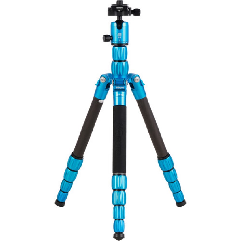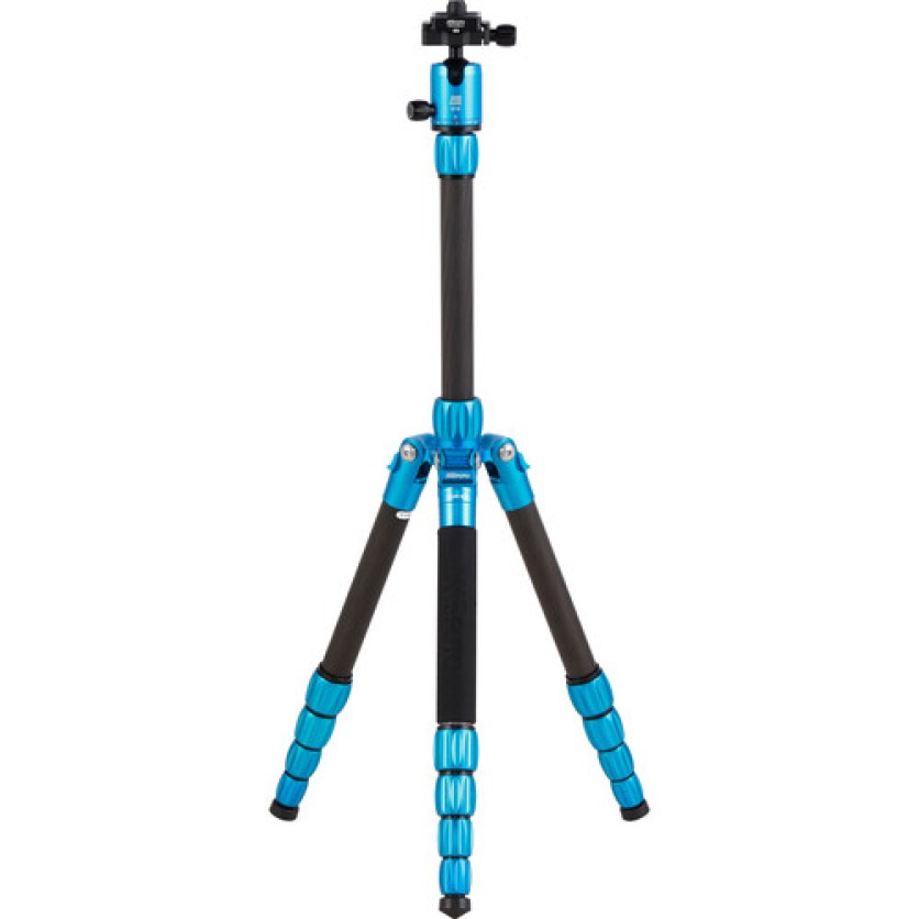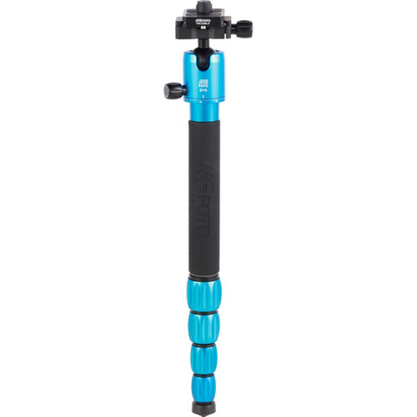 The BackPacker S Travel Tripod from MeFOTO is a 5-section support with aluminum legs and blue anodized-aluminum twist locks that are knurled for a comfortable grip while opening and closing the locks. By extending the legs and the 2-section center column, the 2.5 lb tripod can reach a maximum height of 54.7" and closes to a minimum height of 13.2". The legs fold in the reverse, so it can be carried to another location, and the removable center column and tripod leg combine to a full-working monopod. The Arca-type compatible ball head has a load capacity of 13.2 lb and includes a quick release plate with a 1/4"-20 camera mounting thread.