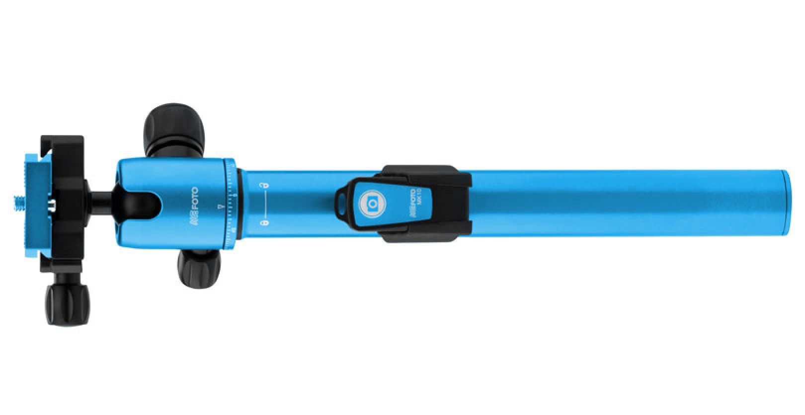 The blue RoadTrip Air Travel Tripod from MeFoto is a sturdy, lightweight, and compact aluminum alloy support designed for the modern enthusiast and smartphone photographer.