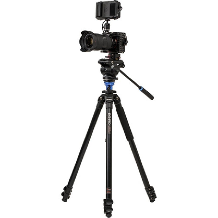 The A2573F Aluminum Single Tube Tripod with S4Pro Fluid Video Head from Benro supports up to 8.8 lb loads and can be carried around fairly easily thanks to its compact and lightweight design. Moreover, with the head featuring a 60mm flat base and 3/8"-16 threaded hole, it can be removed from the tripod and efficiently mounted directly on sliders, jibs, and other support gear. Overall, you get a versatile system with single-tube legs that fold up neatly.