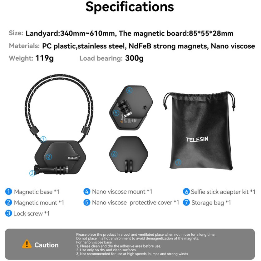 Telesin Magnetic Action Camera Neck Mount with Nano Sticker Kit