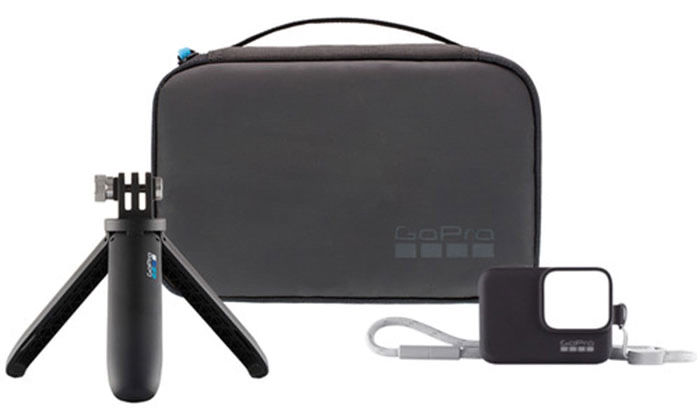 For your trips, vacations, and other journeys, the GoPro Travel Kit includes the Shorty Mini Extension Pole + Tripod and the Sleeve + Lanyard, which between them will let you conveniently capture handheld shots and selfies, as well as simply let your GoPro freely but securely hang from your wrist or around your neck and be available for easy access at any moment. A customizable compact carry case is included for neatly storing everything. The Shorty supports all GoPros while the Sleeve + Lanyard is compatible with the HERO7, 6, 5, and 2018.