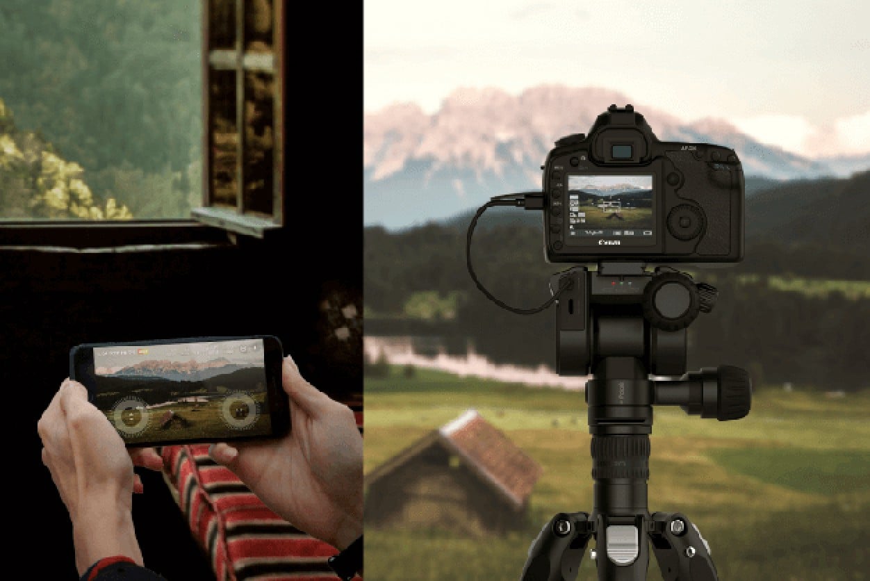 The Benro Polaris is the World's First Electric Tripod Head with Camera Interface Controller, Remote DSLR Preview & Configuration through WiFi/Mobile phone network.