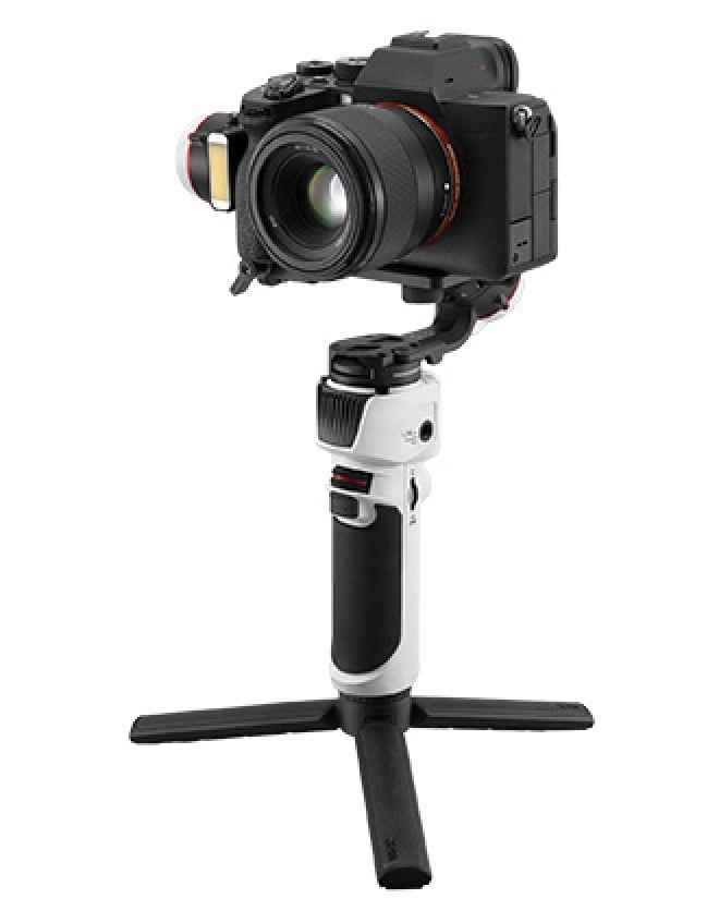 Over built-in Wi-Fi, the gimbal can sync up with a Wi-Fi-enabled camera that supports remote zoom, shutter, and video start/stop control, or you can utilize a camera control cable and the USB Type-C port on the baseplate to control the camera shutter and also power the camera. Over built-in Bluetooth, the camera syncs up with a free-download ZY Play mobile app for iOS and Android for additional capabilities. The app provides remote control over many functions of the gimbal and has filmmaking features such as time-lapse, panorama, and slow-motion capture. The integrated LED light allows you to utilise a fill light for your subject without the requirement of external lights.