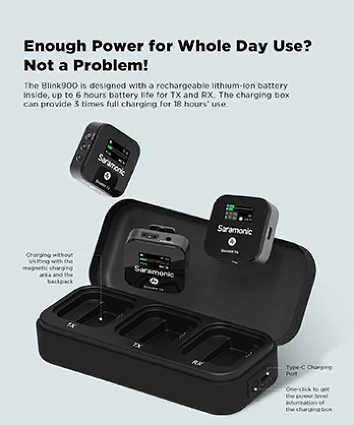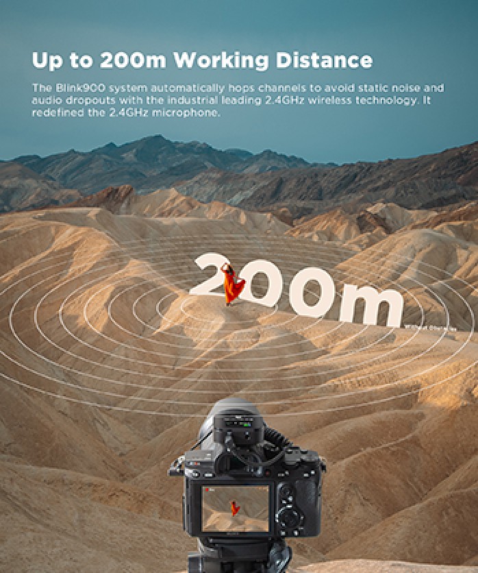 Meet Blink 900 B2, the new lightweight, long-distance dual-channel wireless microphone system from Saramonic. Using new DSP technology, it delivers incredible crystal-clear sound with 6ms ultra-low latency at distances of up to 200 meters.