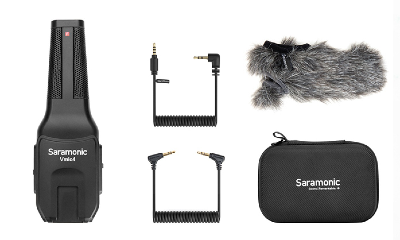 Saramonic Vmic4 is a camera-mountable dual-capsule directional condenser microphone, capturing high-quality sound from both front and rear sides. An extra 3.5mm input jack allows users to add an extra Lavalier mic or wireless mic to support various applications.