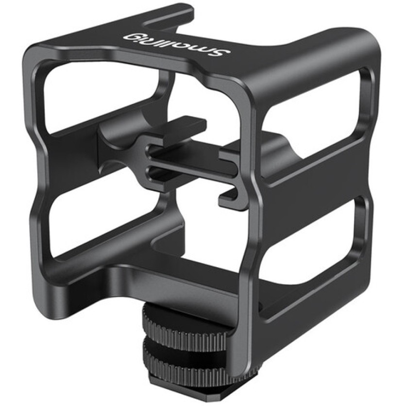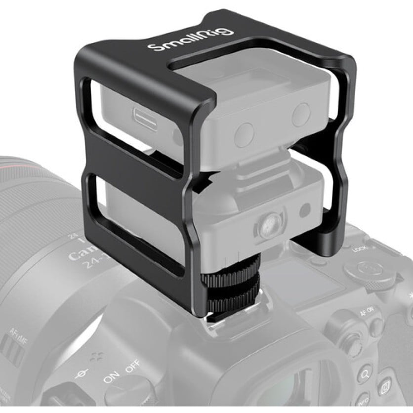 Mount and store your Rode Wireless GO transmitter and receiver set on your cage or rig with this lightweight Storage Cage from SmallRig. The durable aluminum cage mounts on your camera or rig using its shoe adapter, and it is designed to protect your Rode Wireless GO microphone transmitter and receiver.