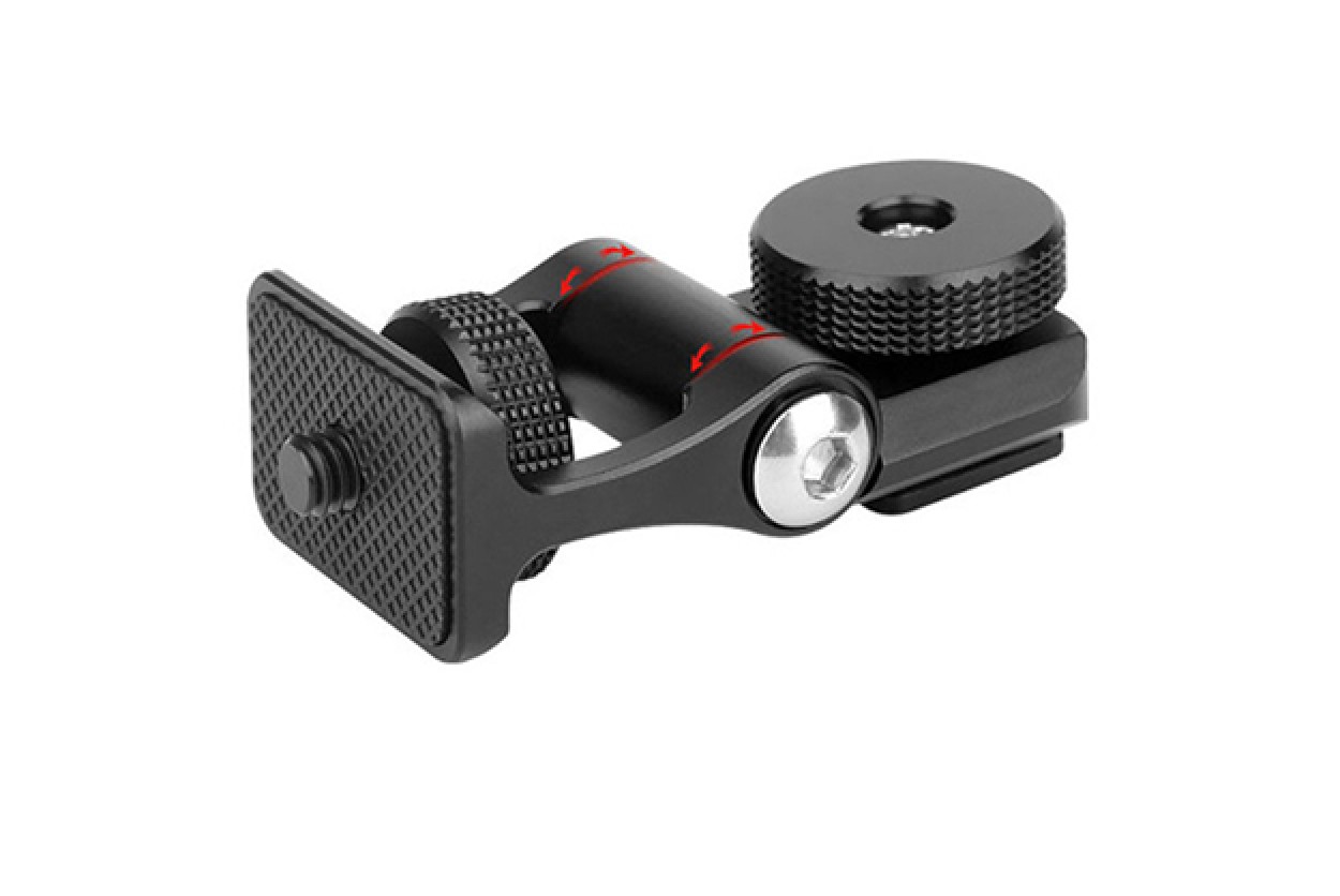 The monitor tilt bracket allows you to easily adjust your camera or camcorder monitor for the best viewing angle. Its compact design ensures simple attachment and secure mounting with a 1/4"-20 screw and cold shoe foot. The knurled thumbscrews make adjustments easy, while the durable aluminum alloy construction ensures longevity. Ideal for enhancing your filming experience with convenient monitor positioning.